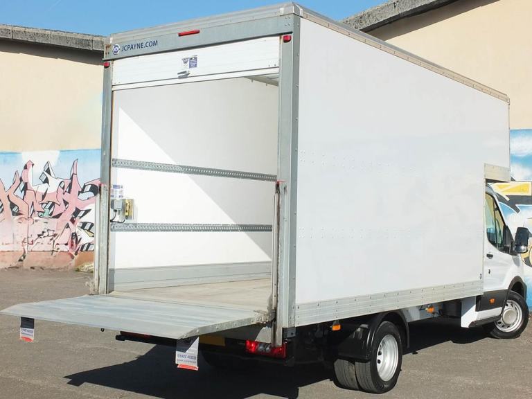 Resin-Bonded 15mm Specialist Plywood Load Deck, Large Over-Cab Luton Storage Pod, 2 metre+ Rear Door Aperture Height, In-Cab Tail Lift Isolator, Internal & External Tail Lift Controls with Changeover Switch, DRW - Twin / Double Rear Wheels, Rear-Wheel Drive, 3 Seats - Double Passenger Seat with Fold-out Table, Split Lift-Up Seat Cushion & Underseat Stowage Compartment, Daytime Running Lamps, 3.5 tonne / 3500 kg GVW Long Wheelbase L4 Chassis-Cab with Top-Quality 4.2m Body by JC Payne, Ford 'Easy Fuel' Capless Refuelling System, Hill Start Assist, Driver Airbag, ABS with Curve Control, EBA (Emergency Brake Assist) & EBD (Electronic Brakeforce Distribution), ESC (Electronic Stability Control), LAC (Load Adaptive Control), ROM (Roll Over Mitigation), Traction Control, Power-Assisted Steering (PAS), Remote Central Locking with Deadlocking,