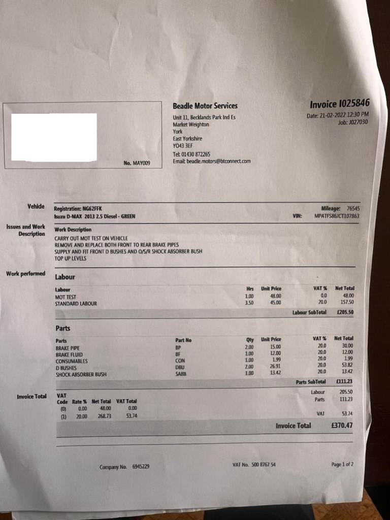 It failed MOT last year on a fog light bulb and then had a few advisories which have all been done regardless at the cost of just over £600 please see receipts.