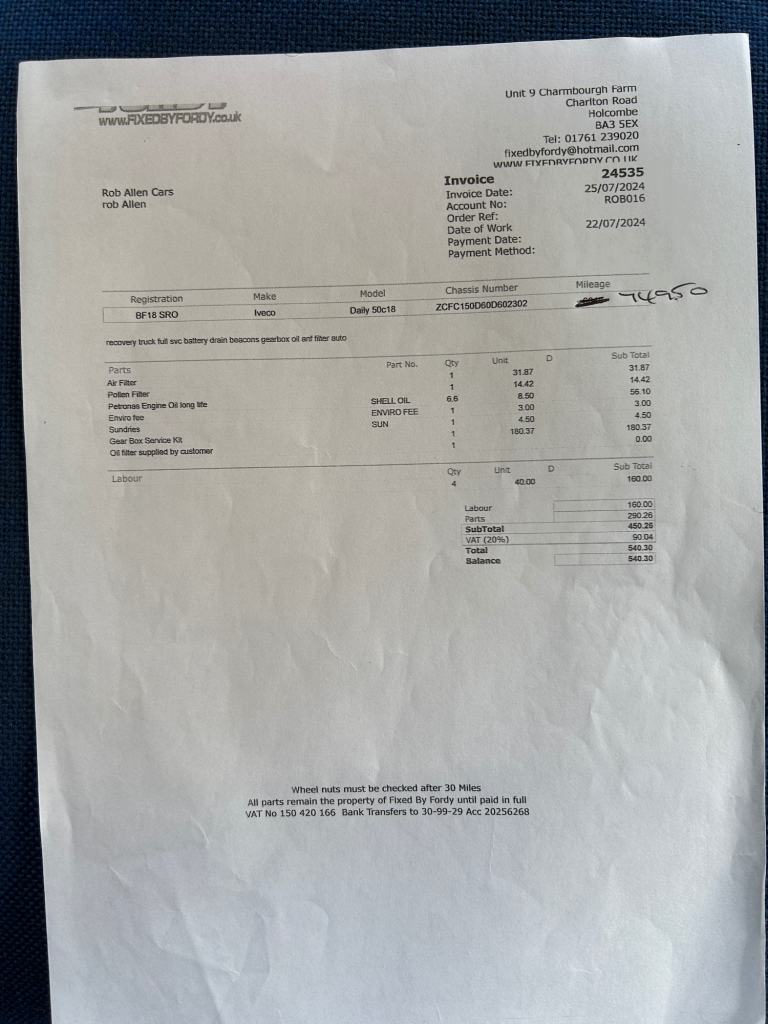 *VIEWING BY APPOINTMENT PLEASE* - EURO 6 ULEZ COMPLIANT - THIS HAS BEEN OUR OWN VEHICLE FOR THE LAST 2 YEARS, IT HAS BEEN FAULTLESS, PULLS LIKE A TRAIN - 5.2 TON GROSS, CAN CARRY 2.6 TON [WILL REQUIRE C1 LICENCE CATEGORY ON YOUR LICENCE] - 17 FOOT REAR BED - FULL SERVICE HISTORY PRINT OUT UP TO MY OWNERSHIP - SINCE MY OWNERSHIP - FULL SERVICE 22/07/2024 @ 74950 MILES - NEW FRONT DISCS AND PADS 31/07/2024 - INTERIM SERVICE AND REAR BRAKE SERVICE 07/08/2025 @ 83125 MILES - MOT UNTIL 31/10/2026 - 2 KEYS - ROOF MOUNTED EMERGENCY BEACONS PLUS BEACONS IN THE FRONT GRILL - ELECTRIC WINCH - ONLY REASON FOR SELLING IS THAT I AM SCALING BACK MY BUSINESS, DRIVES PERFECTLY. - PRICED TO SELL !! - PART EXCHANGE WELCOME - PLEASE SEE OUR GOOGLE REVIEWS.
