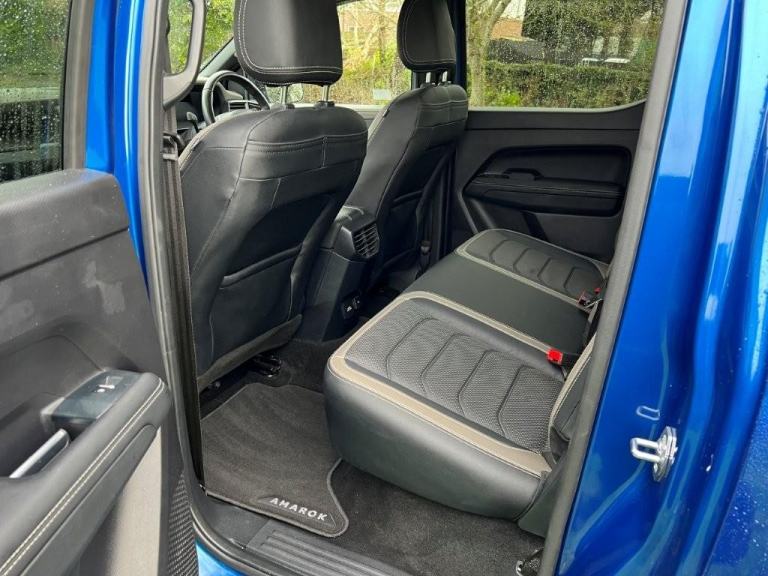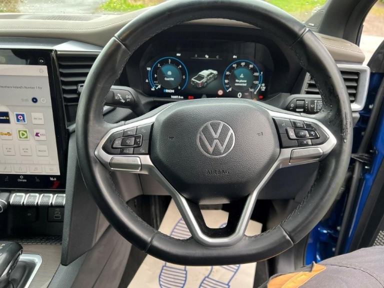 We’re delighted to offer this striking Blue Amarok with JUST 16,608 miles, presented in superb condition and packed with an impressive list of premium features. Highlights include the Area View 360° camera, 18″ Amadora alloy wheels, tow bar, lane‑keeping system, side steps, power windows, and an advanced cruise control system with predictive speed, adaptive cruise control, and dynamic road display. Practical touches such as a 120V outlet in the load bay, a 120V–230V outlet in the rear centre console, and a 3‑seat second‑row bench add real versatility. Lighting is exceptional thanks to IQ Light LED matrix headlights, dynamic headlight range control, LED rear combination lights, and front fog lights with cornering function. Inside, you’ll find a leather‑wrapped multifunction steering wheel, dual‑zone climate control, premium leather‑look dashboard, ambient lighting, keyless start, and a heating and fresh‑air system, complemented by dark privacy glass. Safety and convenience are further enhanced with electric heated adjustable mirrors, mudflaps, tyre pressure monitoring, ISOFIX points, an automatic post‑collision braking system, and an overhead console. A truly capable, well‑equipped Amarok ready for work or adventure.