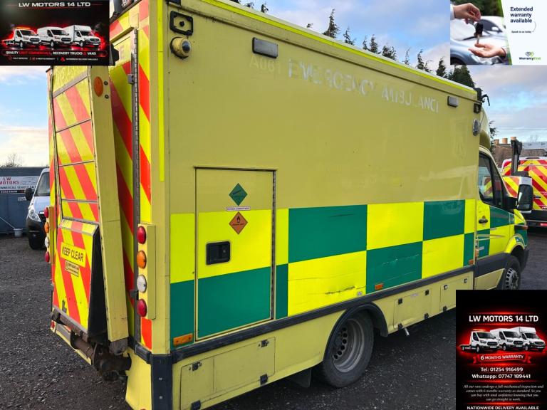 PLEASE NOTE THERE IS VAT TO BE PAID AND WILL BE ADDED TO THE FINAL PRICE NO VAT IF GOING FOR EXPORT COMES WITH A FREE 6 MONTHS NATIONWIDE WARRANTY AS STANDARD SO YOU CAN BUY WITH TOTAL CONFIDENCE KNOWING THAT YOU CAN GO STRAIGHT TO WORK WITH TOTAL CONFIDENCE THIS VAN IS READY TO GO STRAIGHT TO WORK EXTEND 1 2 OR 3 YEAR WARRENTY FOR AN ADDITIONAL COST CALL FOR MORE INFO MERCEDES BENZ SPRINTER 519 CDI DIRECT EX AMBULANCE SERIVICS 2016 66 REG EURO 6 ULEZ FREE INSIDE IS 12FT LONG 6FT3 HIGH 6FT9 WIDE ITS DONE 464,299 MILES DIRECT EX FLEET VEHICLE 1 OWNER FROM NEW MOT AUGEST 2026 IT STARTS AND DRIVES VERY WELL AND PLANTY OF POWER 3.0 DIESEL AUTOMATIC GEARBOX 188 BHP PULLS LIKE A TRAIN ELECTIC WINDOWS ELETRIC MIRRORS REMOTE CENTRAL LOCKING AIR CONDITIONING LOTS OF STORAGE LIFT NIT WORKING 3.0 LETER AUTOMATIC GEARBOX 188 BHP TWIN WHEELER JUST COME OFF SERVICE FROM LANCASHIRE AMBULANCE SERVICES FULLY DECOMMISSIONED IN THE REAR ITS FULLY INSULATED WITH BLOW HEATING THROUGHOUT IN REAR ROOF LIGHTS SIDE DOOR 3 SEATS IN REAR PLUS 2 SEATS IN FRONT IDEAL CAMPER VAN HORSEBOX ECT ITS IN EXCELLENT CONDITION INSIDE AND OUT IT DOES HAVE A FEW MARKS AND DENTS BUT NOTHING MAJOR SEE PHOTOS ANY INSPECTION WELCOME COMES WITH A FREE 6 MONTHS NATIONWIDE WARRANTY AS STANDARD SO YOU CAN BUY WITH TOTAL CONFIDENCE KNOWING THAT YOU CAN GO STRAIGHT TO WORK WITH TOTAL CONFIDENCE THIS VAN IS READY TO GO STRAIGHT TO WORK EXTEND 1 2 OR 3 YEAR WARRENTY FOR AN ADDITIONAL COST CALL FOR MORE INFO NO VAT IF GOING FOR EXPORT NATIONWIDE DELIVERY SERVICES AVAILABLE THERE IS VAT TO BE ADDED AND WILL BE ADDED TO THE FINAL PRICE P/X WELCOME AT TRADE PRICES EXPORTERS WELCOME NO VAT IF GOING FOR EXPORT