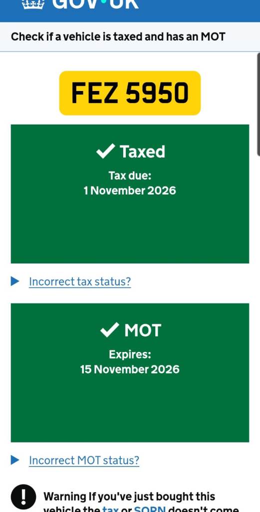 This vehicle has not been reported stolen, scrapped, exported or flagged as unroadworthy.