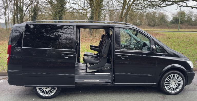 Hi and welcome to a very rare sale of a 2012 FACELIFT MERCEDES BENZ VIANO AMBIENTE EXTRA LONG WHEEL BASE 165 BHP 6 SEATER WITH WHEELCHAIR ACCEES RAMP, finished in the fantastic colour Metallic Black, with the super sleek Automatic gearbox, this has the Monstrous 2.1 CDI Diesel powerplant! Effortless, ground shaking performance and super convenient these engines are renowned for there reliability as plenty of examples from the C class to the sprinter which I have seen with over 400k on them, so this has done baby miles 126k only.