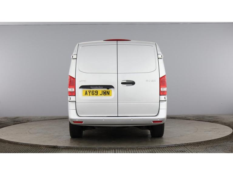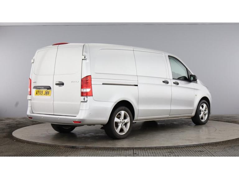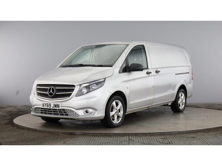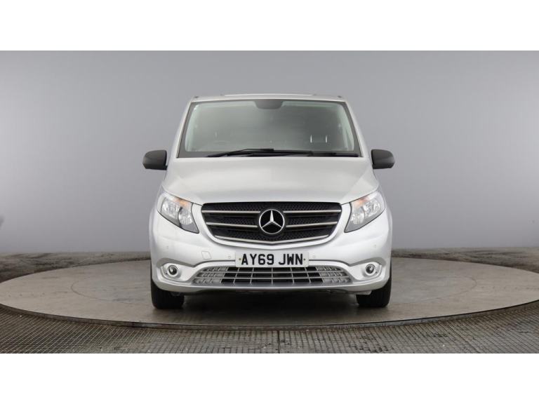 2019 69 reg Mercedes Vito 114 2.1 Cdi 136 bhp L2 H1 Premium finished in Metallic Brilliant Silver with spec to include alloy wheels, parking sensors, reverse camera, sat nav, air con, cruise control, bluetooth, bulkhead, ply lined, auto headlights, front fog lights, electric mirrors & windows, dab, pas.