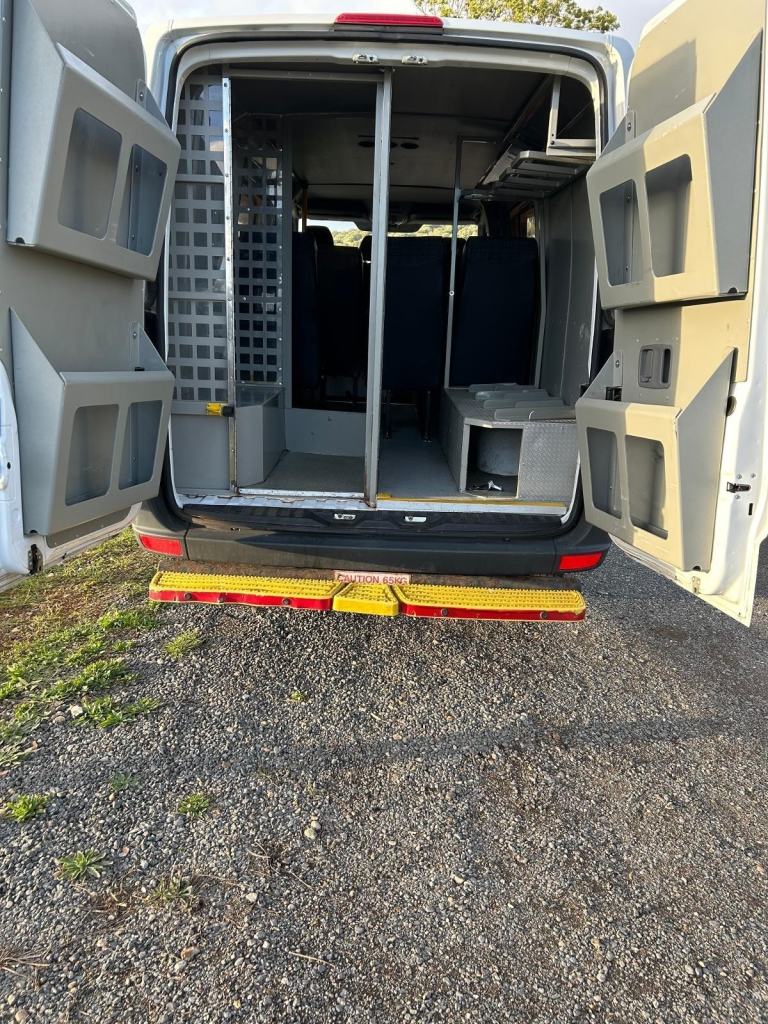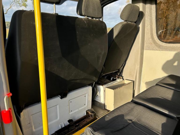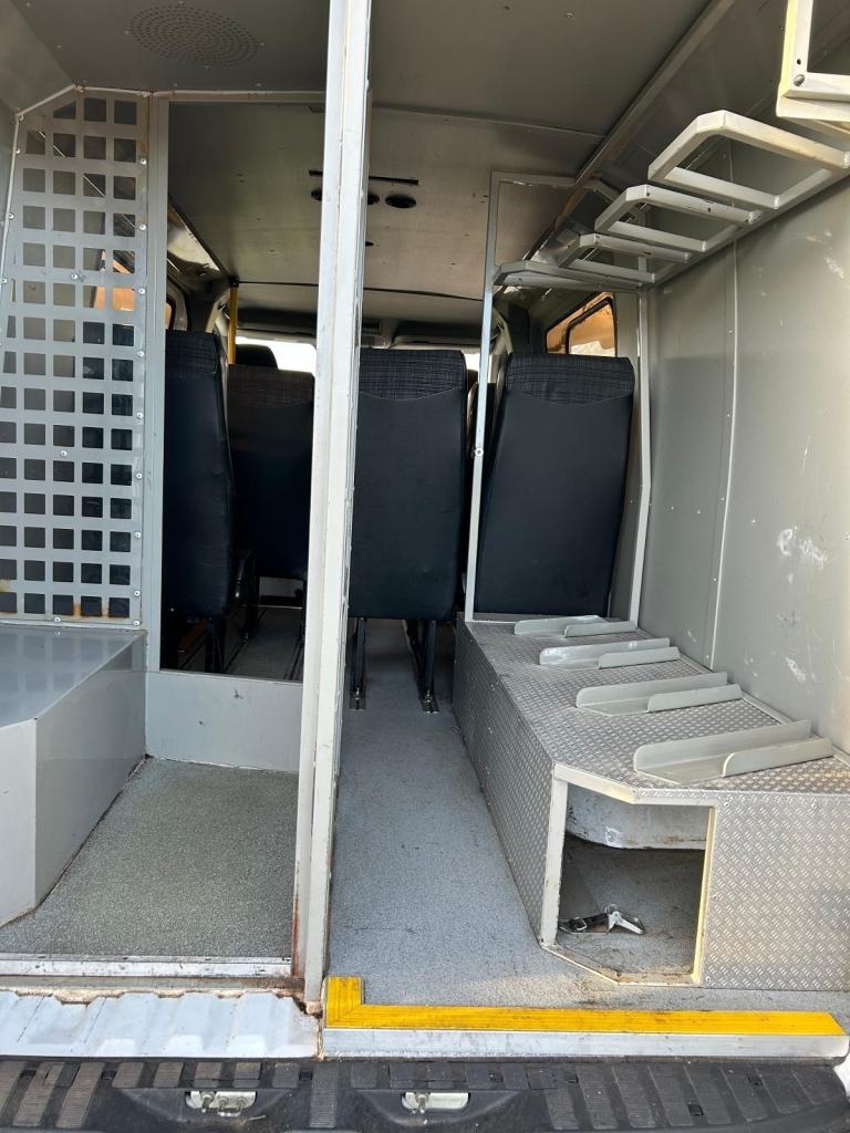 REAR IS FITTED OUT AS A PEOPLE CARRIER WITH SEATING AND REAR CAGES.