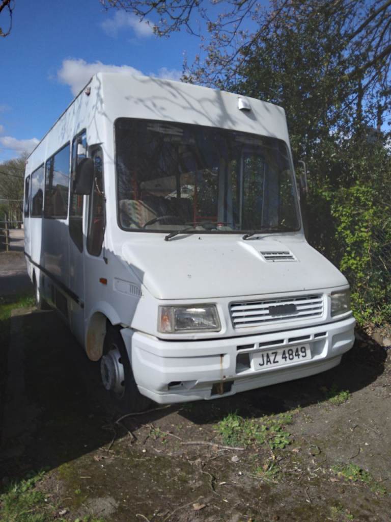 Iveco 59 12 minibus WOULD MAKE EXCELLENT CAMPER. 2.8 turbo diesel. Fitted with quick release seats (worth £100 a set) and wheel chair lift ( could be used to lift motorbike). Small inverter fitted which powers the TV and dvd player. Good sound system. Suspension damped drivers seat. Only 73,000 kilometres - around 60,000 miles. I bought this years ago for 'jolly boys' weekends, not been used for a while so up for sale cheap at £2500 which includes the private plate ( worth £750) Recommend taking it away on a trailer as it has been stood a while and is currently sorn'd but it will drive. Its been all the way up to the north of Scotland with a bus full of guys and cases of beer many times and never missed a beat. Will do 70mph but sits nicely at 60mph all day long. Previously PSV mot'd and well looked after. Genuine reason for sale - it does not get used anymore - will be sad to see it go. £2500 or best offer. £2000 without private plate.
