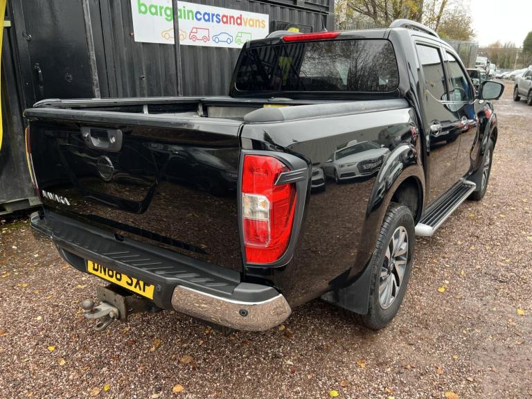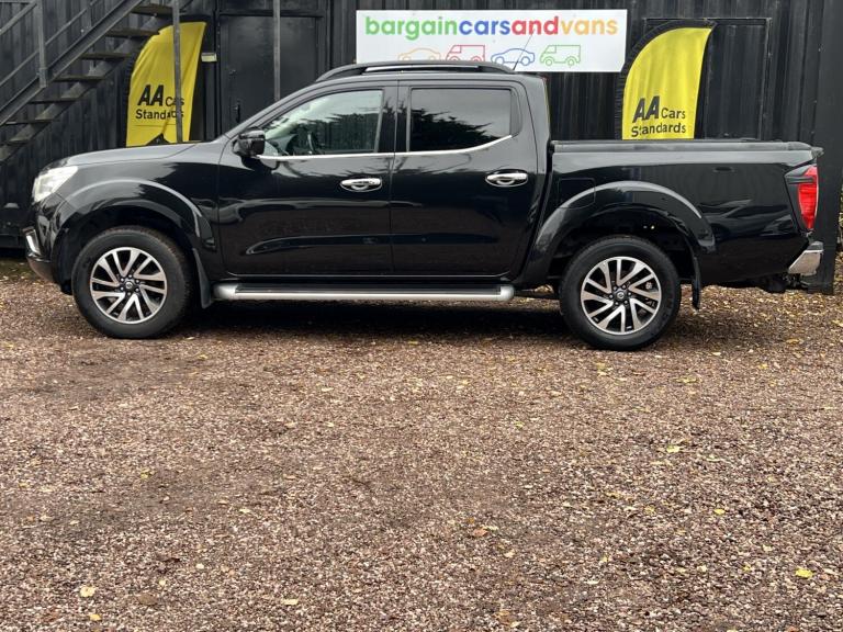 FREE 2 YEAR NATIONWIDE WARRANTY + 12 MONTHS AA BREAKDOWN COVER INCLUDED! Nissan Navara 2.3 dCi Tekna Black (Automatic) 128,676 miles 2 Previous Owners Euro 6 ULEZ Compliant Finished in Black, this Nissan Navara Tekna has been freshly serviced on arrival into stock and comes with an MOT valid until December 2026 with no advisories. Impressively, it has never failed an MOT, showing how well it has been maintained throughout its life. This high-spec Tekna model is packed with features, making it ideal for both work and leisure. It includes factory satellite navigation, reverse camera, rear parking sensors, cruise control, Bluetooth connectivity, and heated half-leather seats. Practical extras include side steps, roof rails, tow pack, load liner, and more, offering excellent versatility whether used as a workhorse or a lifestyle pickup. Powerful, reliable, and comfortable, the Navara delivers strong performance while remaining refined on the road. It's a clean, well-presented example that has clearly been cared for and is fully prepared for its next owner. Ghost immobiliser and tracker packages are available for added peace of mind. Nationwide delivery available. A well-equipped, dependable pickup that's ready to drive away today. Just because the price is low, doesn't mean you have to compromise on quality! All of our vehicles must pass a Strict Safety Inspection and Road Test up to 70mph. This vehicle has passed an extended history check to make sure it is clear of finance, has never been stolen, written off and has a verified mileage with no discrepancies. Bargain Cars and Vans are a Proud Member of the Independent Motor Dealers Association (IMDA) and follow their Code of Conduct. We are committed to Treating Customers Fairly (TCF) and conduct business with complete transparency in all areas. Give us a call to book a viewing and test drive. PART EXCHANGE WELCOME! NO HIDDEN ADMIN FEE's! WhatsApp Part-Ex Valuation Hotline Send photo's and details to 07999300903. Visit [Website URL removed] to view 60 other fantastic Bargain Cars and Vans.