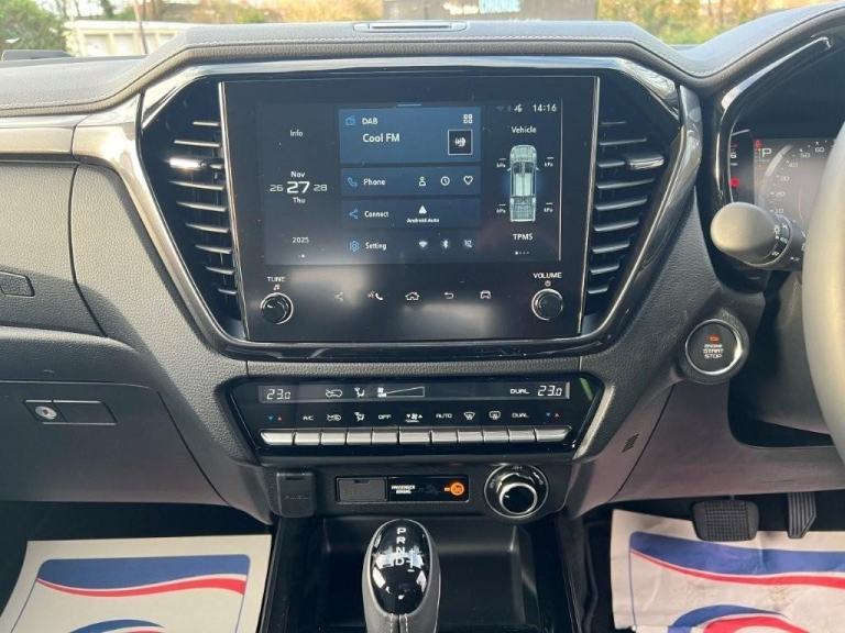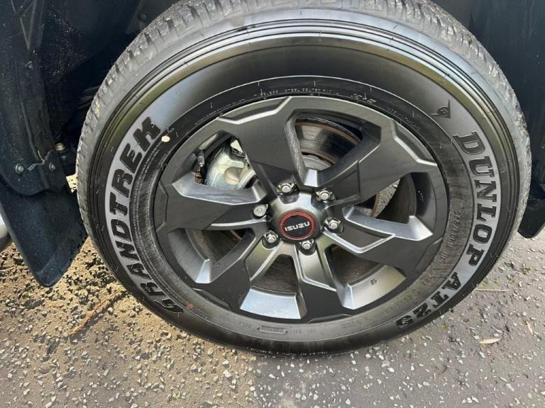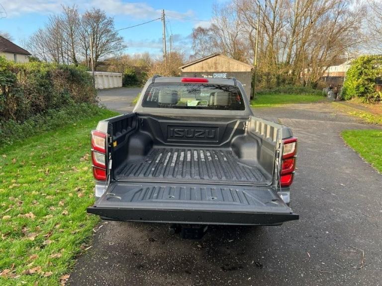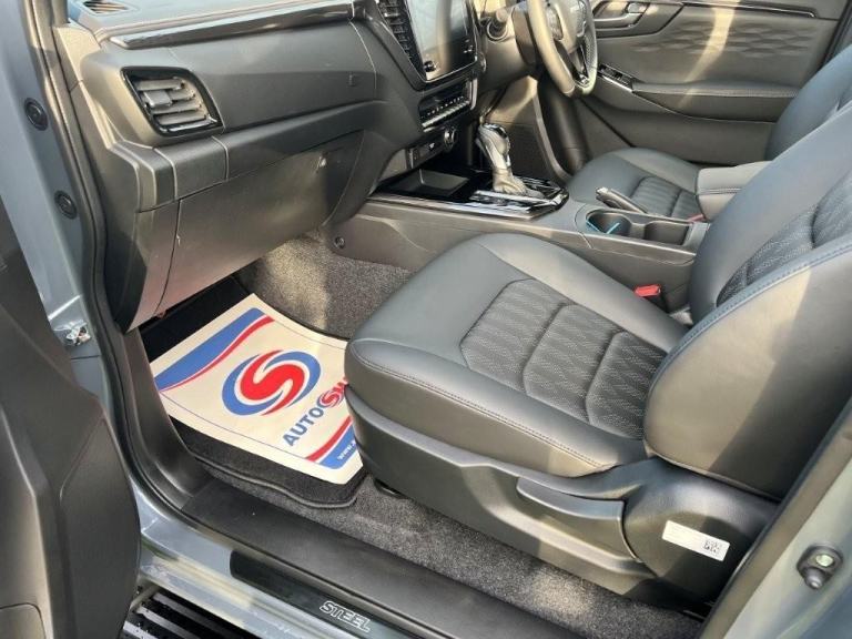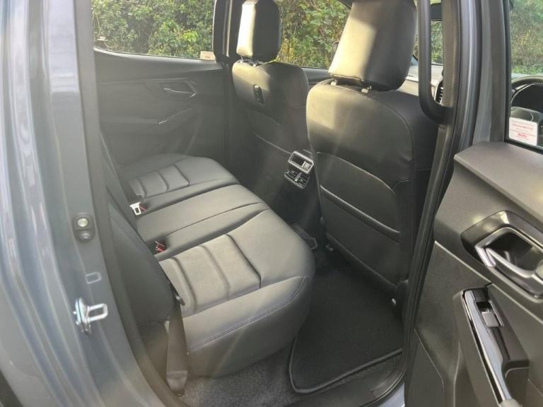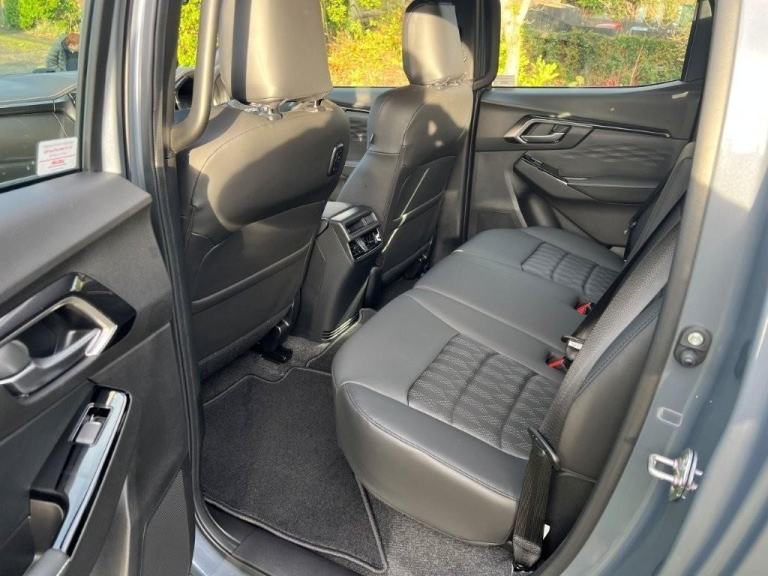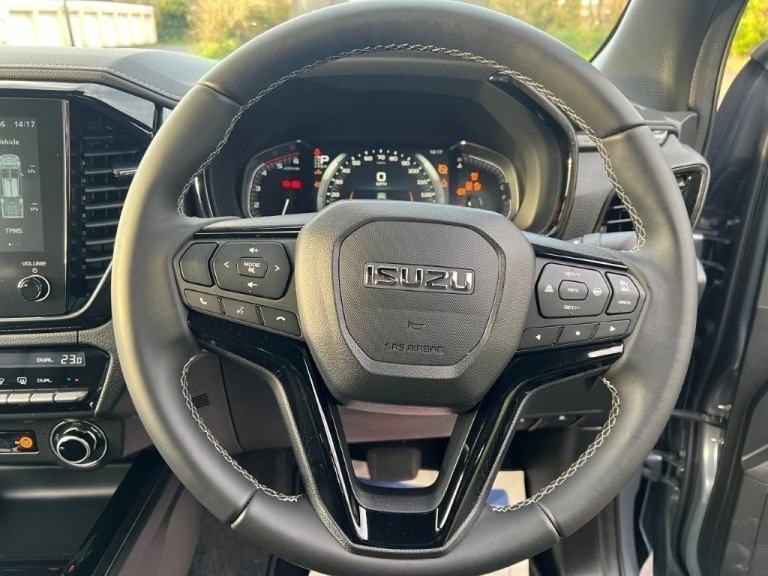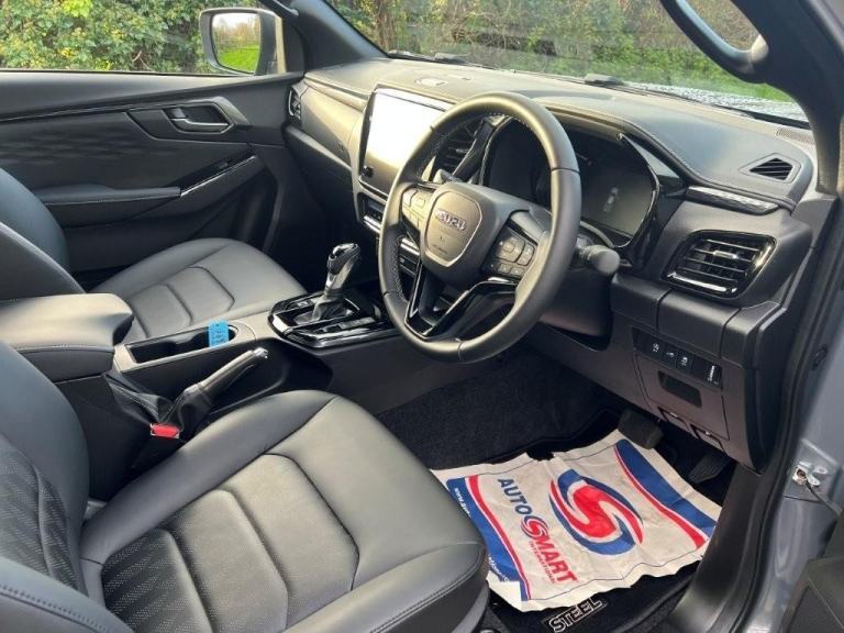 Sporting a Steel Grey Mica metallic finish, this pick-up is rugged, capable and impressively versatile, delivering true industrial strength with a premium edge. Key features include dark grey roof rails, black alloy wheels, full black leather seats, rear camera, front and rear parking sensors, electric folding mirrors, keyless entry with push-button start, and an auto-dimming rear-view mirror. It’s equipped with Bi-LED headlights, automatic wipers, a 12-volt power outlet, dual-zone climate control, cruise control, forward collision warning, autonomous emergency braking, traffic sign recognition, an intelligent speed limiter, lane departure warning and prevention, lane keep assist, blind spot monitoring, speed-sensitive power steering, traction control, trailer sway control, brake assist, hill start assist and hill descent control, along with practical touches such as ISOFIX child seat preparation, rear and side steps, a branded tailgate badge and a dark grey Isuzu grille emblem.