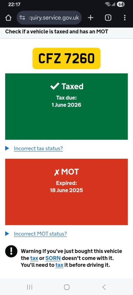 This vehicle has not been reported stolen, scrapped, exported or flagged as unroadworthy.
