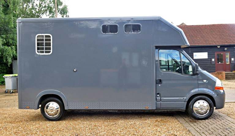 Renault Master 3.5 TON Horse BOX offered in good condition for the age and mileage, due to the age and mileage we cannot offer a warranty with this vehicle. Kitchen with cooker and sink. this van has had a total refit 2-3 years ago with new sides, floor with kitchen area. The engine had a new turbo at the same point. Finished in VW Pure grey which looks great on the van Space for 2 horses With rear living area including a sink with water attachment plus a gas cooker Rear bench seating cabin with 3 seats the van will come with a new mot and service. We purchased this horse box as category N due to the sides needing replacing. This vehicle is not held on site so please call 01252 318417 to arrange a viewing. viewing strictly via appointment only.
