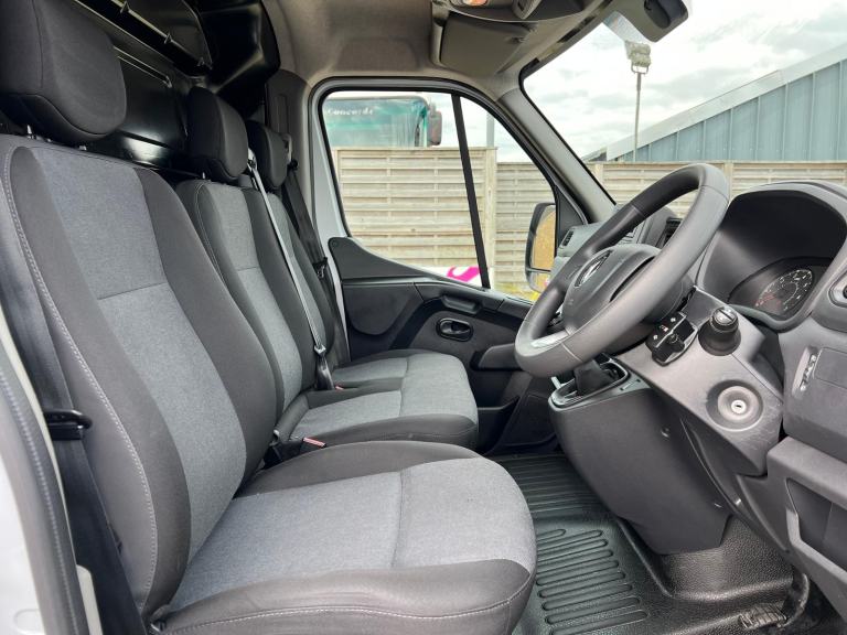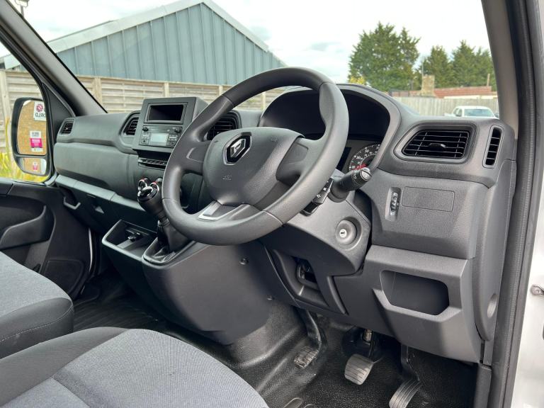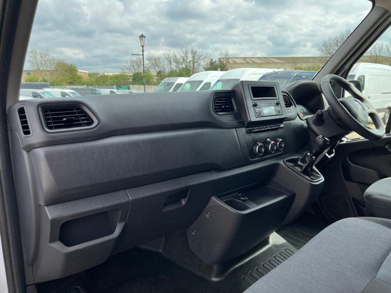 2024 73 reg Renault Master LL35 2.3 Dci 145 Business Lwb 13FT5 Low Loader Platform Cab Luton finished in White with spec to include bluetooth, auto headlights, eletric mirrors and windows, dab, pas, rear barn doors.