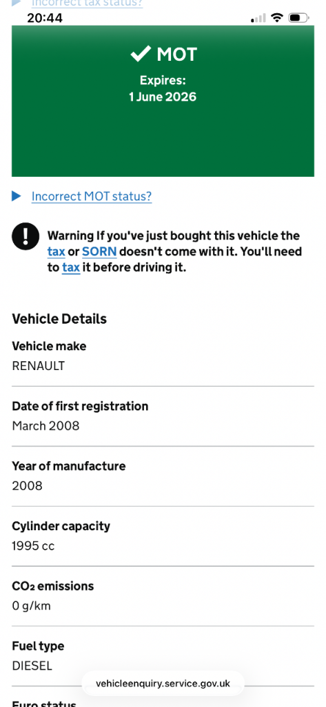 This vehicle has not been reported stolen, scrapped, exported or flagged as unroadworthy.