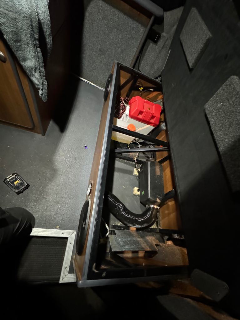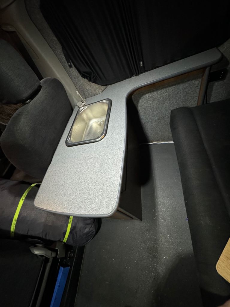 Has rock and fill bed with seatbelts