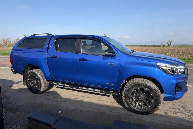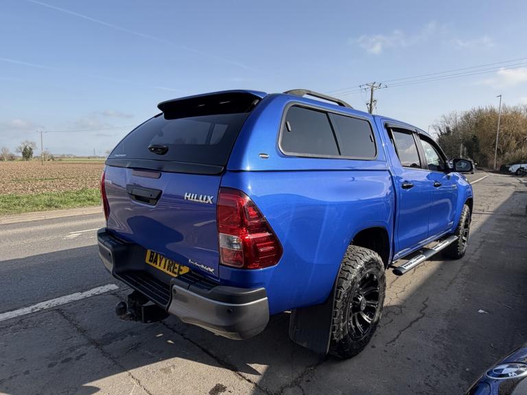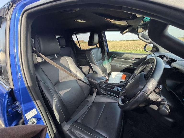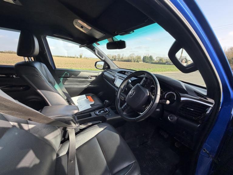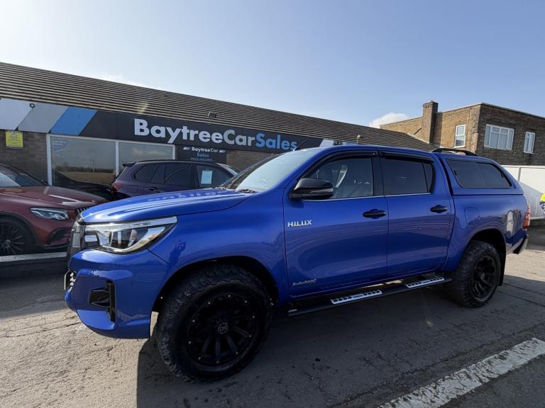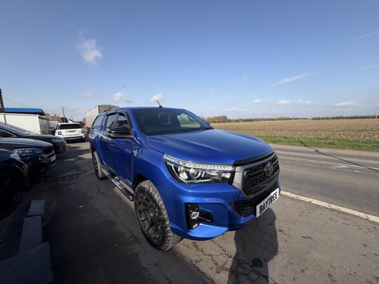Toyota Hilux 2.4 D-4D Invincible X finished in Blue (Auto), 44000 miles, only 2 previous owners. No vat on sale Toyota Hilux Invincible X 2020 44,000 Miles £27,995 44,000 miles Automatic Diesel 4x4 Immaculate and well-maintained 2020 Toyota Hilux Invincible X, finished in stunning blue with contrasting black alloys. A superb example of Toyota's legendary reliability combined with premium comfort and serious off-road capability. Key Details: 44,000 genuine miles 2.4 D-4D Diesel Automatic gearbox Four-wheel drive (4x4) Full service history with a fresh service sale MOT will come with 12 months 2 keys Top Spec Invincible X Features: Full black leather interior Heated front seats Satellite navigation Reversing camera & parking sensors JBL premium sound system Adaptive cruise control LED headlights & daytime running lights Keyless entry & push-button start Climate control Privacy Extras: Colour-coded canopy Side steps Black rhino alloys with Goodrich all terrain tyres Tow bar Why Buy This Hilux? The Invincible X is the top-of-the-range model combining rugged durability with SUV-level comfort. Whether you need a dependable workhorse, a family 4x4, or something ready for adventure, this Hilux delivers. Drives superbly with no issues. Clean bodywork and interior. First to see will buy. Only £27,995 Because we are a RAC-approved dealer, all our vehicles come with free RAC breakdown cover, a free RAC history check, 12 months MOT, and a full service. Nationwide delivery is available. Call 01406 373474 for more information (even out of hours) Please also feel free to contact us outside of hours to discuss this vehicle further.