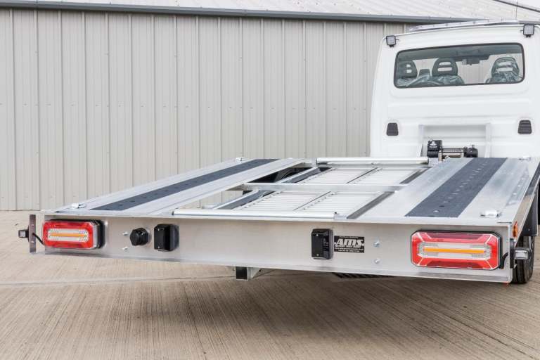 AMS are not general fabricators, we are car transporter / recovery truck specialists and that is reflected in the quality of our product. Our transporter bodies use very lightweight but durable materials and a level of attention to detail that few can rival. Even the rivets and bolts that we use are specially chosen so that we know our recovery bodies meet both the need for light weights but durability and long service lives out in the real world. Also, this level of engineering means that our transporter bodies can meet type approval requirements if needed.