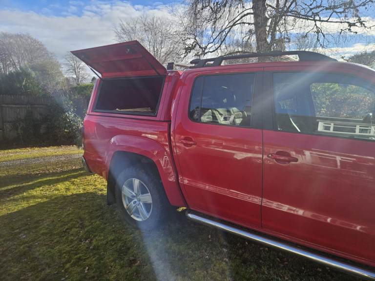 VW Amarok highline red V6 double cab pick up truck for sale. RSI stainless steel, lockable, colour coded canopy. Tow bar and 4 roof bars fitted. 8 years old. Full service history. 12 months MOT. Made in German factory. Best truck I ever owned. New vehicle forces sale. VAT to be added to price.