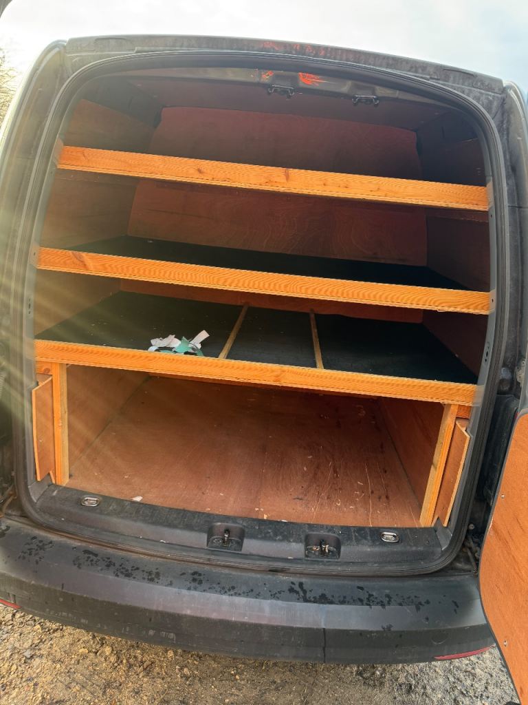 Vw caddy maxi lovely van drives mint odd mark here and there full ply lined with shelves