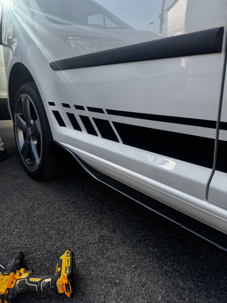 Fitted a bonnet protector, side skirts and stickers all around, updated the back bumper to a white one with sensors connected up. It does currently have a private plate assigned to it but this will be removed prior to sale.