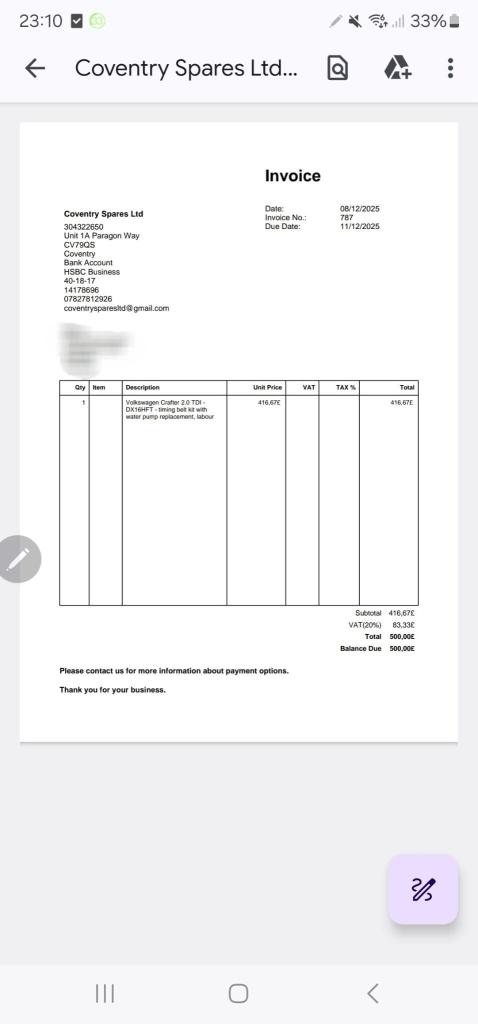 Posting for 11+ yearsVOLKSWAGEN CRAFTER 2.0 TDI LUTON TAIL LIFT NEW CLUTCH FLY WHEEL & CAMBELT NO VAT