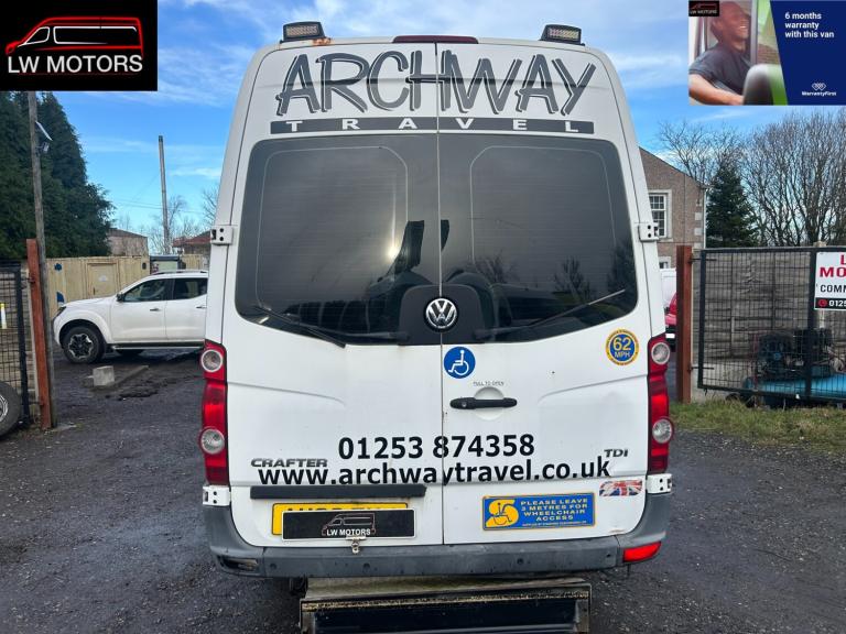 PLEASE NOTE THERE IS VAT TO BE PAID AND WILL BE ADDED TO THE FINAL PRICE NO VAT IF GOING FOR EXPORT COMES WITH A FREE 6 MONTHS WARRENTY OR WE CAN EXTEND THE WARRENTY FOR AN ADDITIONALS PRICE VOLKSWAGEN CRAFTER 50 BLUE TDI LONG WHEEL BASE HIGH ROOF 17 SEAT MINIBUS 2012 62 REG ITS DONE 206,751 MILES DIRECT EX FLEET VEHICLE 1 OWNER FROM NEW MOT EXPIRED WE CAN PUT A NEW 12 MONTHS MOT FOR AN EXTRA £50 IT STARTS AND DRIVES EXCELLENT AND HAS GOT PLANTY OF POWER 2.5 DIESEL 6 SPEED MANUEL GEARBOX PULLS LIKE A TRAIN TWIN REAR WHEELER CAZ COMPLIANT ELECTIC WINDOWS REMOTE CENTRAL LOCKING ELETRIC RAMP AT THE REAR JUST COME OFF SERVICE HAS BEEN FULLY MAINTAINED AND SERVICE ALL LIGHTS IN THE REAR IN FULLY WORKING ORDER FULLY INSULATED WITH BLOW HEATING THROUGHOUT IN REAR ROOF LIGHTS SIDE DOOR STEP ENTREY ALL PASSANGER SEATS IN REAR PLUS 2 SEATS IN THE FRONT IDEAL CAMPER OR TO PUT BACK ON THE FLEET ECT ITS IN EXCELLENT CONDITION INSIDE AND OUT FOR ITS YEAR IT DOES HAVE SOME MARKS DENTS ECT BUT NOTHING MAJOR SEE PHOTOS 6X EXCELLENT TYERS COMES WITH V5 LOGBOOK 1X KEY AND MANUELS ANY INSPECTION WELCOME COMES WITH A FREE 6 MONTHS WARRENTY OR WE CAN EXTEND THE WARRENTY FOR AN ADDITIONALS PRICE NO VAT IF GOING FOR EXPORT NATIONWIDE DELIVERY SERVICES AVAILABLE THERE IS VAT TO BE ADDED AND WILL BE ADDED TO THE FINAL PRICE P/X WELCOME AT TRADE PRICES EXPORTERS WELCOME NO VAT IF GOING FOR EXPORT