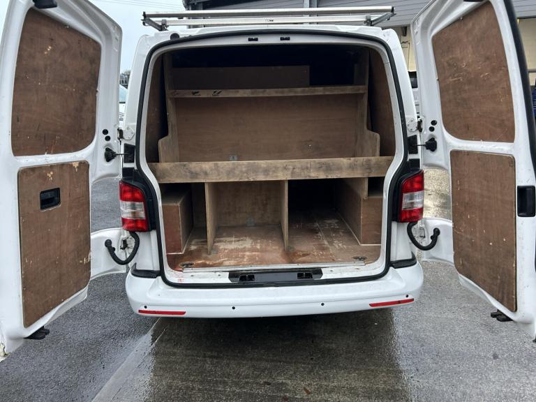 Volkswagen Transporter 2.0 TDI T30 Startline finished in White (Manual), 97100 miles, 1 Company Owner, Service History, 2.0 tdi 102ps, Short Wheelbase, Side loading door, PAS, Service indicator, Trip computer, RadioCD, Electric door mirrors, Full size spare wheel, Front electric windows, ABS, Drivers airbag, ESP, Passenger airbag, Traction control, Remote central locking, Cloth seat trim, Ply-lined, Bulkhead, Roof Rack, Rear Parking Sensors, Alloy Wheels, Racking