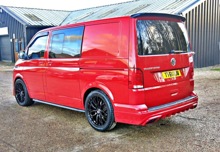 Unique Transporters are delighted to offer this VW T6 Transporter Euro 6 SWB Highline Kombi with aircon and 5 seat with Sportline styling finished in bright red. comes with the following features: Finance this van from 9.9 APR Service with new cambelt kit if required New 20inch Alloys Upgraded lowered suspension 150hp upgradable to 185 bhp SWB + VAT DSG 7 speed automatic Aircon Private plate Euro 6 5 seat 2 captains seats with 2+ 1 rear seat Apple car play Sat nav via apple car play Heated front screen Parking sensors DAB radio Bluetooth Bluetooth music streaming Cruise control Rac Warranty Sportline styling Side bars Air Con Side bars Tailgate Upgraded Lowered suspension Electric front windows and mirrors Extendable Rac Warranty Part exchange welcome 50+ Vw Transporters in stock 102hp not enough? we can remap this to 170hp please ask about this option. Part exchange welcome Upgradable RAC warranties, with electrical and mechanical plus RAC Breakdown cover Finance options are available, please contact us with your requirements. Please call our team for viewing or discuss this vehicle. 01252 318417 This vehicle is subject a customer care pack at £149 please see website for more details WE OPERATE ON A STRICTLY APPOINTMENT ONLY BASIS PLEASE CALL US ON 01252 318417 TO ARRANGE AN APPOINTMENT.!
