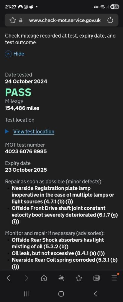 Our vehicle history check is provided for guidance only. Please check all the details with the seller before purchasing