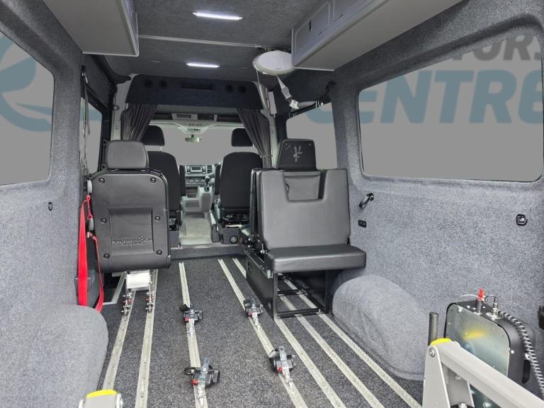 Automatic VW Crafter WAV Wheelchair Access Vehicle With 400KG Wheelchair Lift - MWB - Hi Roof - First Registered On 09/08/24 -One Owner - 2 Keys - 2.0 Diesel Engine - 19,000 Warranted Miles - Brook Miller Conversion With Rock N Roll Bed / Seat - Hoist - 6 Seats - 5 doors - Air Con Front & Rear - Rear Heating - Cruise Control - Parking Sensors - Bluetooth - Power Windows / Mirrors - Folding Mirrors - Privacy Glass