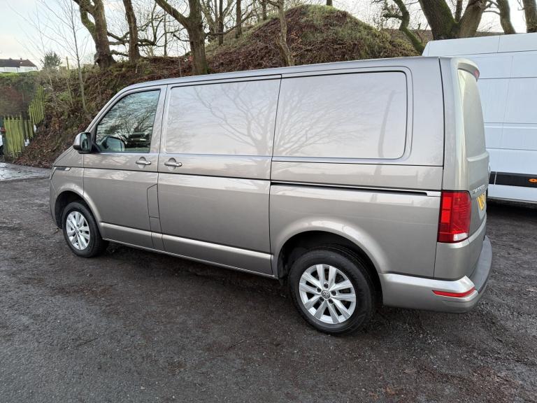 Volkswagen Transporter 150ps Highline. 2021 '21' plate. Low miles in Mojave Beige. Spec includes: Air Conditioning, Cruise control, Remote central locking, Electric windows, Electric Heated mirrors, Parking sensors, front fog lights, 3 seat cab with height adjustable drivers seat, USB 12v charge ports, Apple Carplay Android Auto - DAB Bluetooth handsfree stereo with muti-funtion steering wheel controls, Tailgate, side loading door, plylined, steel bulkhead, lashing points, ABS, Traction control etc, etc. 1 previous owner from new in exceptional condition with full service history. Also includes book pack and spare key. Excellent condition inside and out. Any trial or inspection welcome. Please feel free to call with any questions.