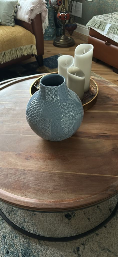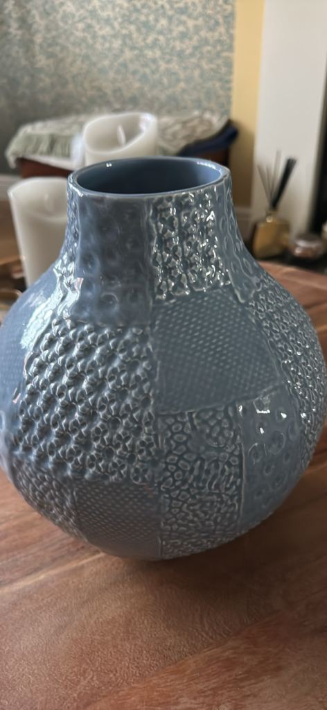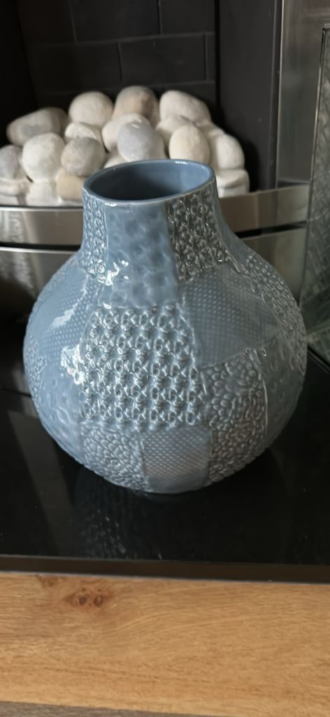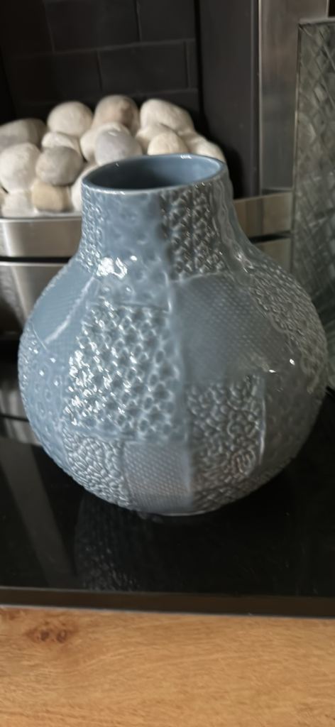 Blue patterned vase.