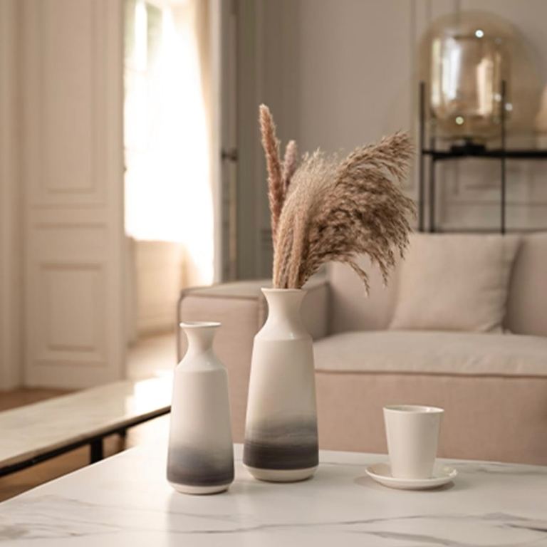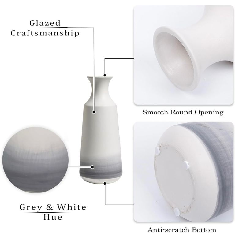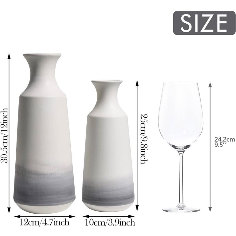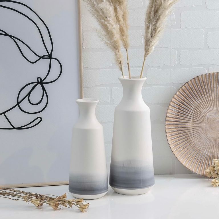 Ceramic Modern Vases x2, 25/30.5cm (white, grey)