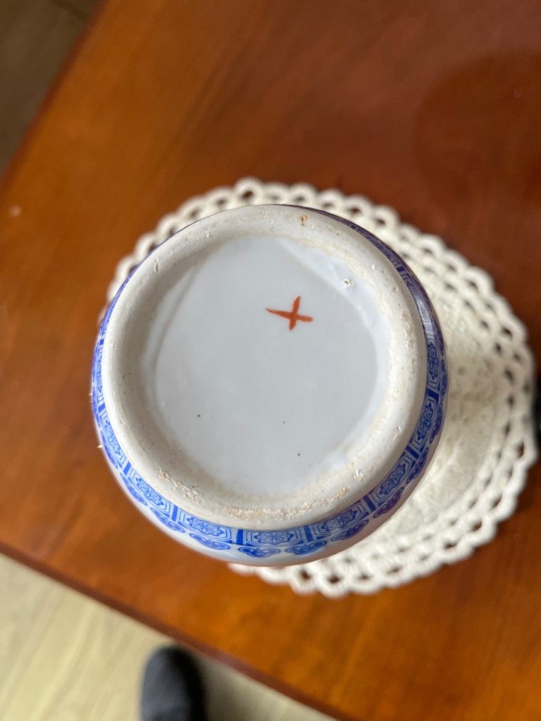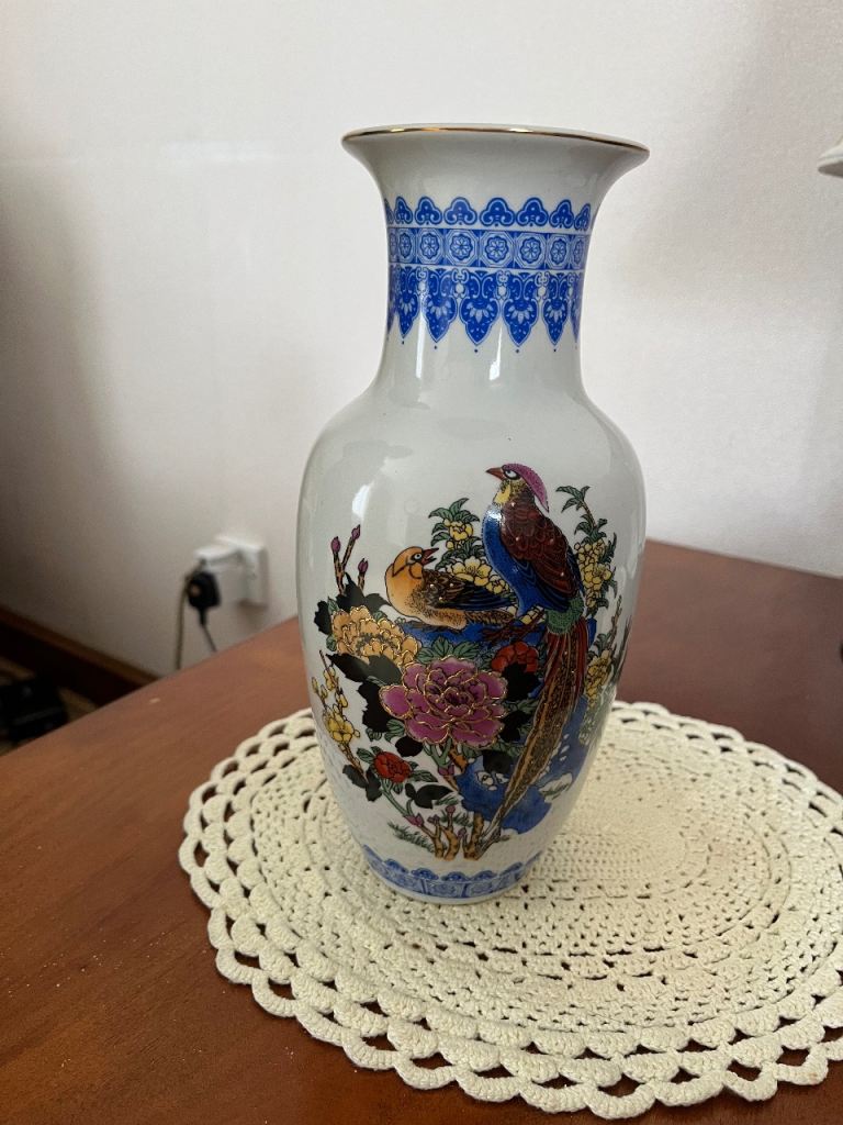 Large ceramic/porcelain vase Chinese or Japanese vase with a pair of birds on two sides, hand decorated golden lines on the edges.