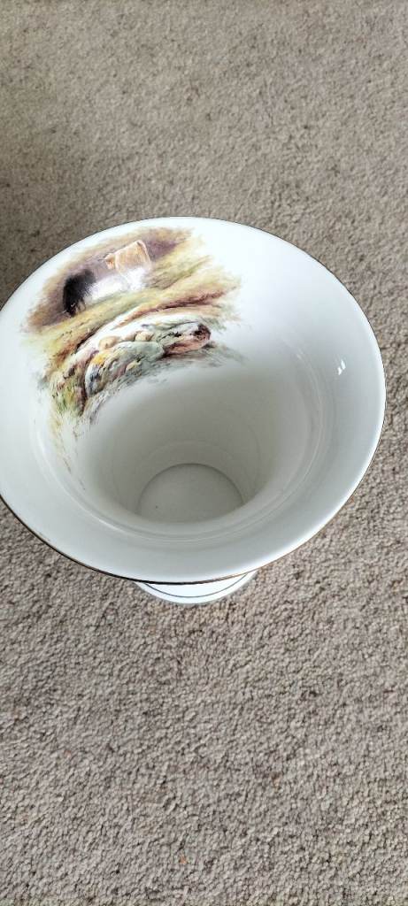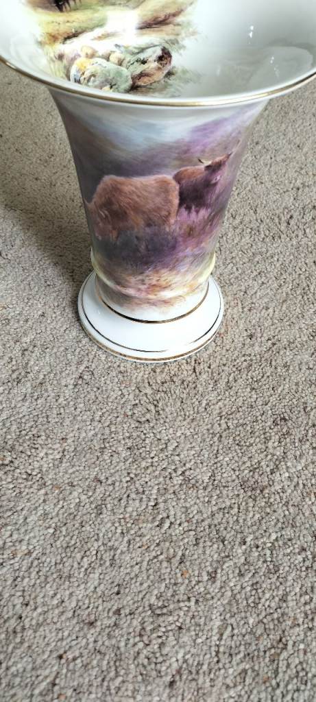 Harcourt china handpainted vase, 19 cm high. Highland cattle scenes