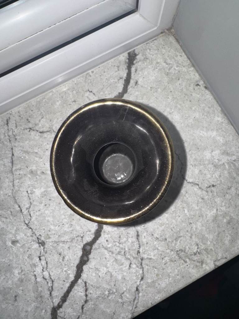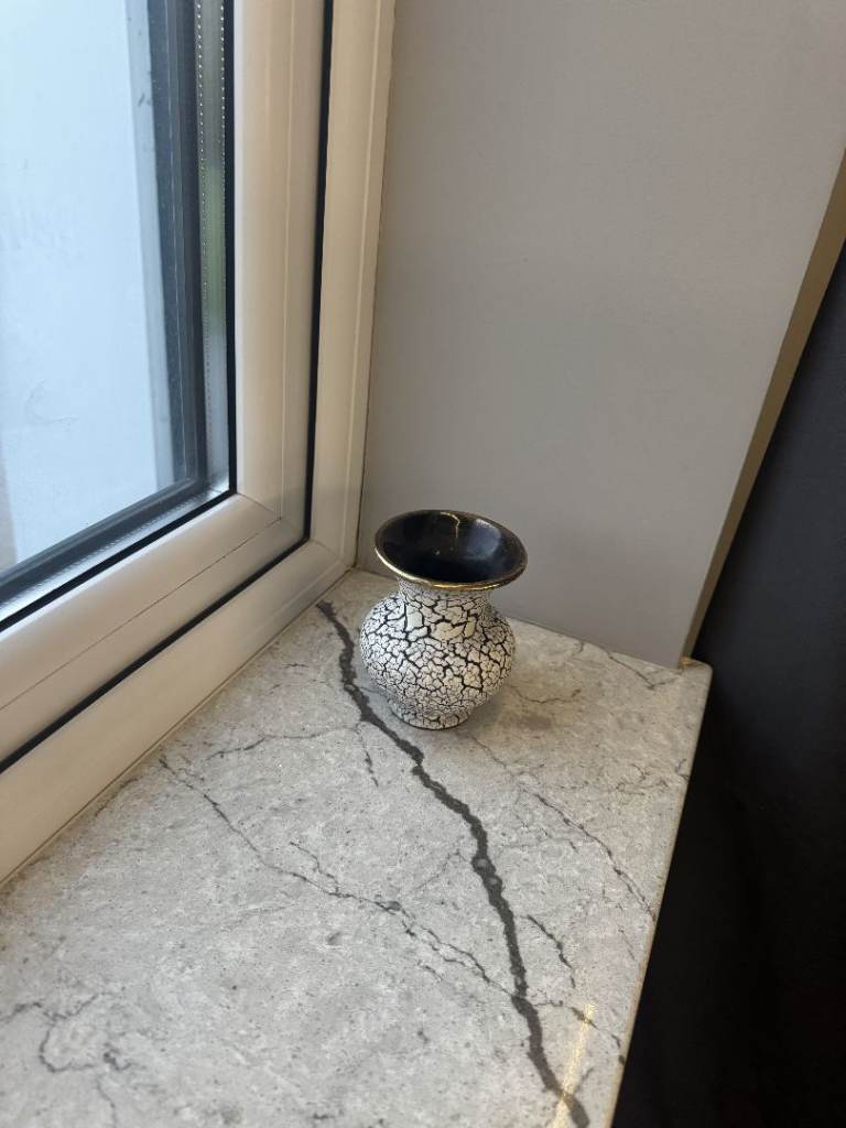 Posting for under a monthJasba Art Pottery Vase 5" West Germany Cortina Lava Glaze Design Black/White