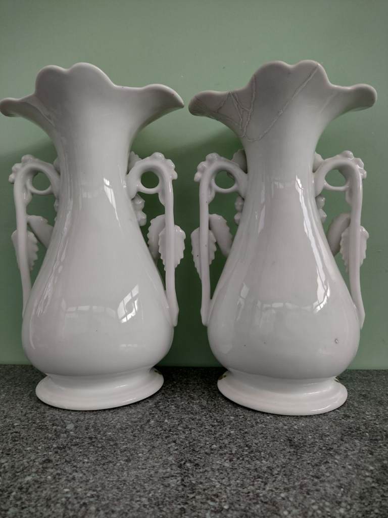 Large Antique 11.5 inch Pair of Vases. One Vase is perfect, one has repairs to the back rim.