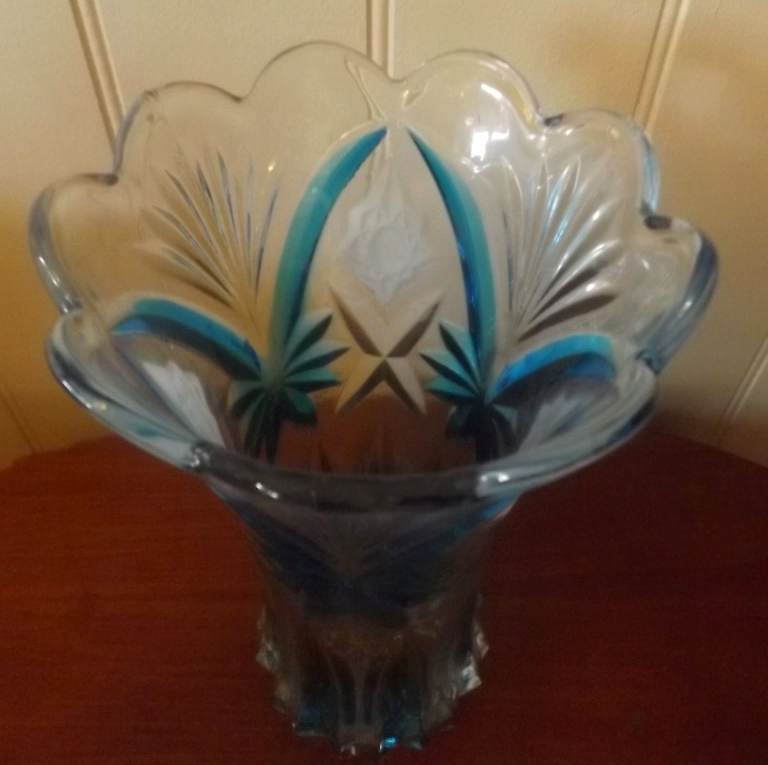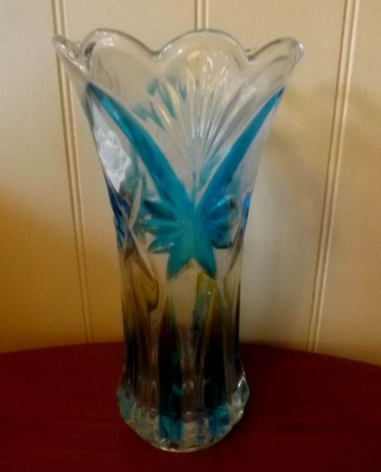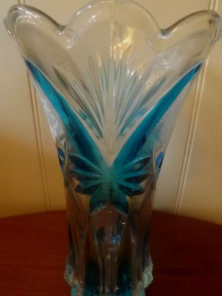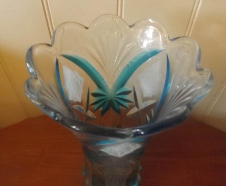 For sale is this France Crystal turquoise coloured flower vase hand painted from the Exquisite Article Series. Made in China. This lovely heavy vase stands just over 9 inches tall with a scalloped top. Would look lovely with flowers or make a statement on its own. Vase is in excellent condition and is unused. Box is included but is a little worn from storage. Price is only £3 and collection view from Totton Southampton. Thank you for your interest.