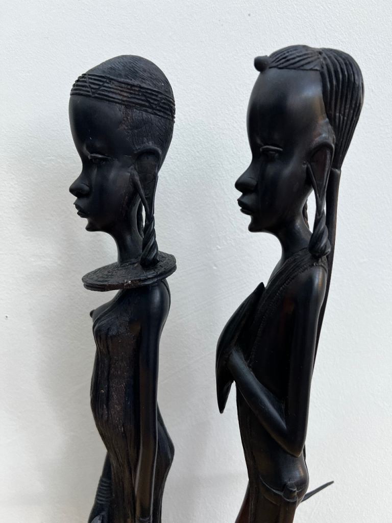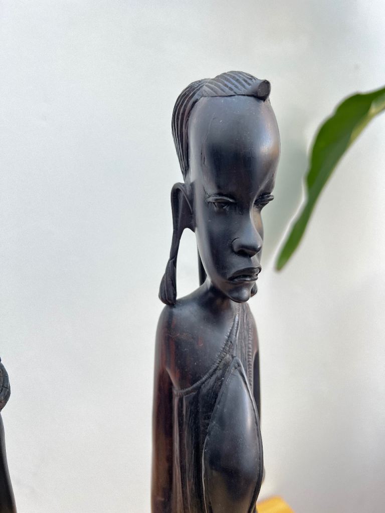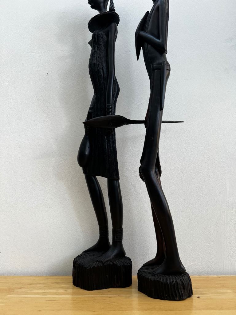 Striking pair of decorative African tribal people, made of mahogany wood, hand crafted.