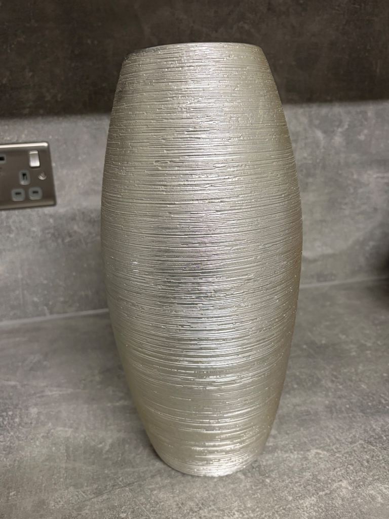 This vase is a stunning piece! Comes in a set of 2 or can sell them separately. They are around 13 inch tall, and look absolutely beautiful on their own or with decorations / flowers inside.