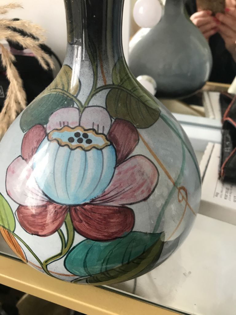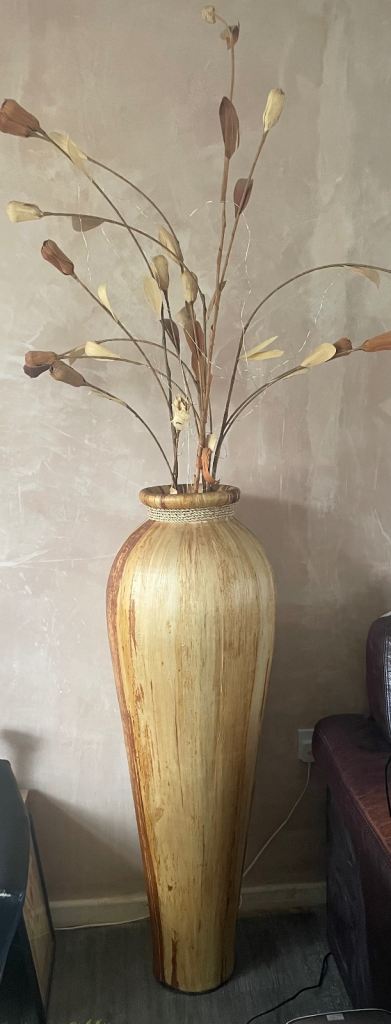 Lovely tall brown floor vase with a mix of decorative flowers and twigs.