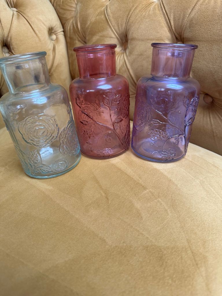 Small milk bottle style vases with Hessian decoration 14cm or 5.5 inches tall