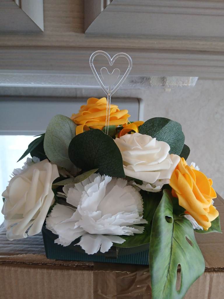 Box of faux flowers