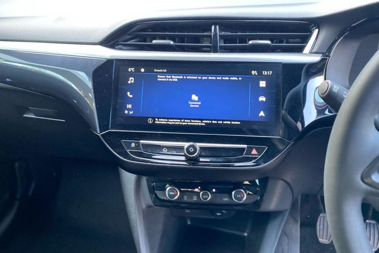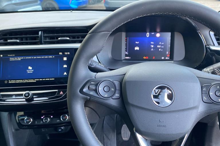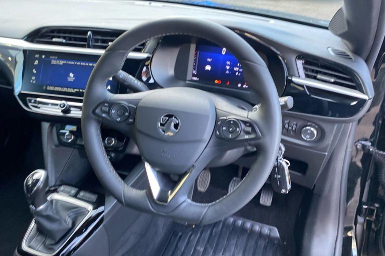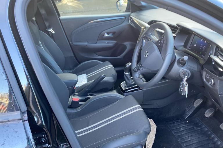 Presenting a 2024 Vauxhall Corsa in striking metallic Carbon Black. This stylish hatchback offers practicality for everyday driving comfortably seating five with a spacious boot that expands up to 1118 litres. Enjoy a smooth manual drive with a responsive 74hp petrol engine delivering impressive combined fuel efficiency of 52.3mpg and a top speed of 108mph. The car’s modern look is enhanced by 17-inch diamond-cut alloy wheels sports front and rear styling and dark tinted glass. Inside the cabin features a 7-inch digital colour display and a sleek black headliner. Advanced safety and technology include a rear parking camera front and rear parking sensors side blind spot alert and intelligent cruise control. ULEZ compliant for peace of mind when travelling in city zones this Vauxhall Corsa is well suited to drivers looking for style practicality and reassurance on the road.