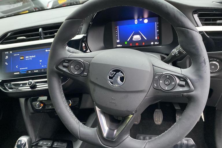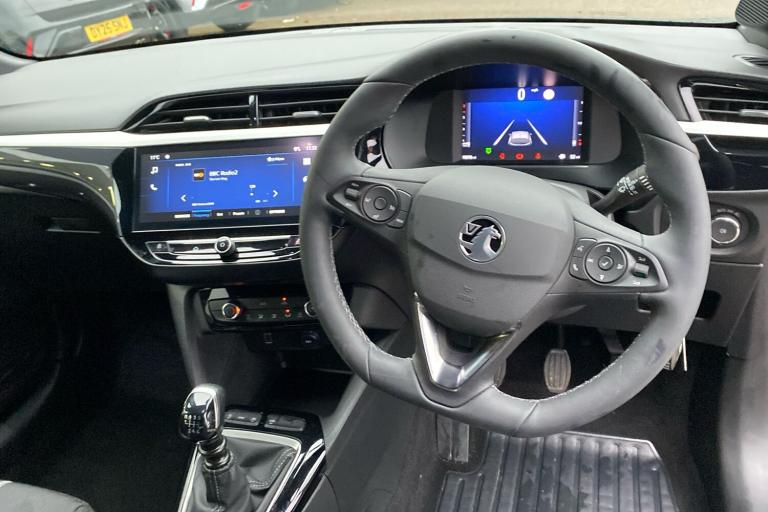 Offered in striking Metallic Diamond Black this 2023 Vauxhall Corsa GS stands out with dynamic sports styling and a refined finish. Combining efficiency with enjoyable driving its 1.2-litre turbocharged petrol engine produces 99 horsepower and a top speed of 120 mph while achieving an impressive combined fuel economy of 53.3 mpg. With five doors and comfortable seating for five it also provides a practical boot capacity of 309 litres extending generously for larger loads. Inside you’ll find a modern digital display and a crisp 10-inch touchscreen multimedia system for a connected experience on every journey. Safety and convenience are enhanced by features such as a rear parking camera front and rear parking sensors and blind spot alert. This vehicle is ULEZ compliant making it a smart choice for city driving with current and future urban regulations in mind. One previous keeper.