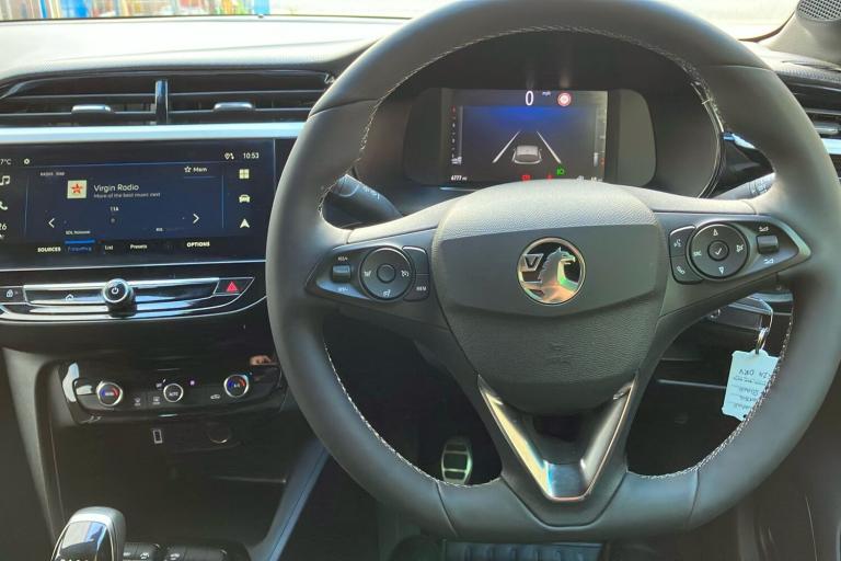 Discover the 2023 Vauxhall Corsa GS in striking Metallic Carbon Black. First registered in March 2024 and with just one previous keeper this hatchback combines eye-catching sports styling with practical everyday motoring. Benefit from impressive combined fuel economy of up to 53.3mpg. Powered by a lively 1.2 turbo petrol engine with a manual gearbox this Corsa can reach up to 120mph. The 5-door design ensures easy access and versatility for both driver and passengers while the generous 309-litre boot and folding rear seats add further flexibility for your journeys. This car is also compliant with ULEZ standards offering peace of mind when driving in low-emission zones. With thoughtful safety and convenience features throughout this Vauxhall Corsa is well suited to modern driving needs and ready for its next adventure.