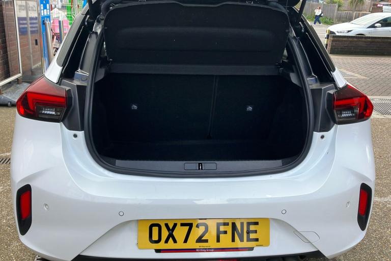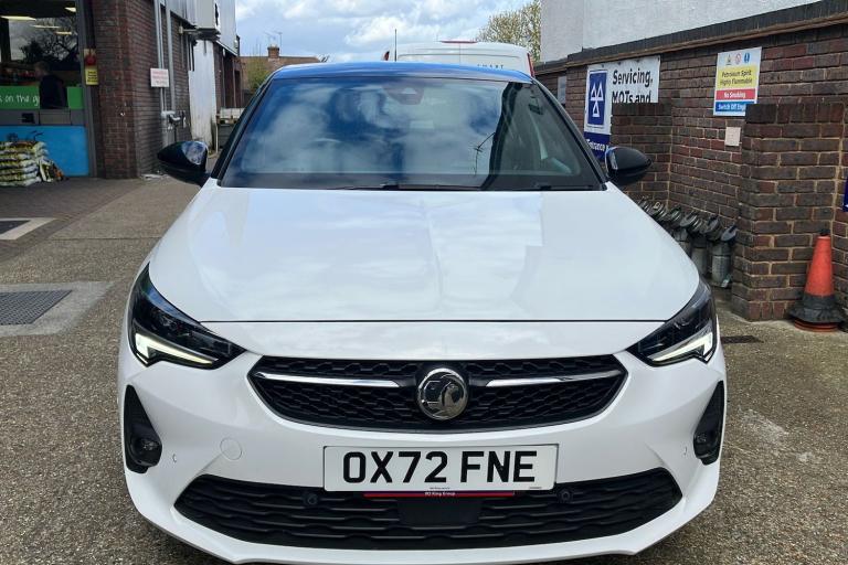 Discover the blend of eye-catching style and practicality in this used 2019 Vauxhall Corsa Ultimate finished in striking Special Solid Arctic White. With an efficient 1.2 Turbo engine automatic transmission and front wheel drive this hatchback achieves an impressive combined 54.3 mpg. Enjoy a sporty yet comfortable driving experience reaching 62 mph in just 8.2 seconds and a top speed of 129 mph. The five-door design offers easy access for up to five passengers and flexibility with a spacious boot capacity of up to 1118 litres with the rear seats folded. The vehicle boasts a distinctive look with 17-inch diamond-cut bi-colour alloy wheels and a range of stylish touches like chrome accents and dark tinted windows. Registered in February 2023 it has had only one previous keeper. This Corsa is ULEZ compliant offering peace of mind when driving in city centres.
