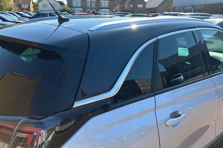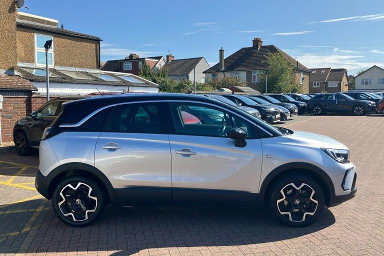 Presenting this used Vauxhall Crossland Ultimate finished in stylish crystal silver metallic paint with a contrasting black roof. First registered in August 2024 and benefiting from just one previous keeper this compact SUV delivers a confident drive with an efficient petrol engine and automatic transmission. It seats five comfortably and offers an impressive boot space expanding from 410 to 1255 litres—ideal for family life or weekend getaways. With a combined efficiency of 44.8 mpg it’s well-suited for urban and motorway journeys alike. Features such as panoramic rear view camera Advanced Park Assist dual zone climate control and a multimedia infotainment system with navigation ensure convenience and comfort on every trip. The car also includes safety enhancements like lane departure warning side blind spot alert and automatic emergency braking. This model meets Euro 6 standards meaning it is ULEZ compliant for driving in London’s Ultra Low Emission Zone.