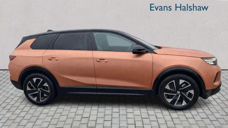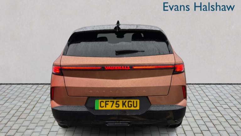 Impact Copper, 10in Digital Instrument Cluster, 16in Multimedia Infotaintment with Wireless Apple CarPlay and Android Auto, Ambient Lighting, Armrest - Centre Console, Automatic Air Conditioning, Climate Control - Electronic Dual Zone, Cooling Glovebox, Electrochromatic Rear View Mirror, Front Door Storage - 1.5L Bottle, Front and Rear LED Reading Lights, Glasses Box, Glovebox - Central Console Storage with LED Light, Heated Steering Wheel, Isabella Mistral Door and Centre Console Armrest with Akaba Blue and Blanc Banquise Stitching, Light Grey Modene Melange Door Inserts, Light Grey Modene Melange Inner Bolsters, Mistral Dark Ambience, Open Cup Holders with Slider x2, Pixel Box, Radio Control on Steering Wheel, Rain Sensitive Windscreen Wipers, Rear Clothes Hooks on B-Pillar Trims, Steering Wheel - Leather-Effect with Dimpling, 11kW On-Board Charger and Mode 3 Cable, Adaptive Cruise Control - Stop and Go, Automatic Headlight Levelling System, Daytime Running Lights - LED, Drive Mode Selector - Sport-Normal-Eco, Electric Power Steering, Front and Rear Parking Sensors with Rear View Camera, Heat Pump, High beam assist, Intelli-LED Headlights, LED Tail Lights, Speakers - x6, Wireless Charger for Mobile Devices, 19in Alloy Wheels - Diamond Cut, 3D Vizor - Illuminated, Acoustic Windscreen, Black Door Mirrors, Body Colour Exterior Door Handles, Bumpers - Front and Rear in High Gloss Black, Dark-Tinted Rear Windows, Electrical and Defrosting Driver Mirror, Electrical and Defrosting Passenger Mirror, Illuminated Griffin - Front, Illuminated Rear Vauxhall Nameplate, Locking Wheel Nuts, Lower Door Claddings - Glossy Black, Manual Tailgate, Power Windows - Front and Rear, Rear Mirror - Power Folding - Welcome Light, Rear Spoiler - High Gloss Black, Rear Wiper with Camera Cleaning, Tyre Repair Kit, Wheel Arch Claddings - High Gloss Black, ABS - Anti-lock Braking System, Automatic Emergency Braking - AEB, EPB - Electric Parking Brake, ESP - Electronic Stability Programme, ISOFIX - Rear 3 Point, In-Crash Braking, Keyless entry and start, Remote Control Security Alarm System, Stability Control, Towing Attached - Trailer Hitch Harness Predisposition, Traction Control