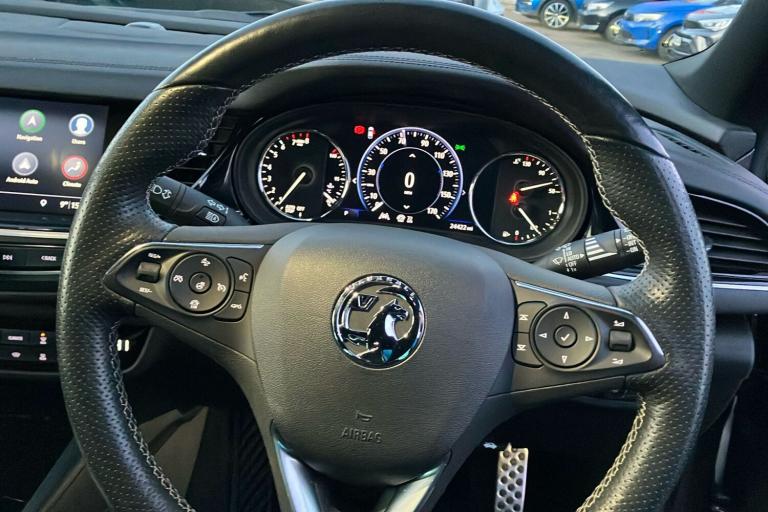 Experience a dynamic drive and refined comfort with this used 2022 Vauxhall Insignia GS Line Grand Sport in a striking grey finish. Delivering a spirited performance its 2.0i turbo petrol engine achieves 197 horsepower allowing acceleration from 0 to 62 mph in just 7.2 seconds and a top speed of 146 mph. Enjoy the convenience of automatic transmission and the economy of up to 38.2 mpg combined. The spacious hatchback body provides ample room for both passengers and luggage with a boot capacity of up to 1450 litres. Standout features include 20-inch bi-colour alloy wheels a heated steering wheel adaptive LED headlights and dark tinted rear windows all enhancing comfort and style. Advanced technology such as a digital instrument cluster and an 8-inch touchscreen navigation system add to its modern appeal. This vehicle is fully ULEZ compliant making it ideal for urban driving.