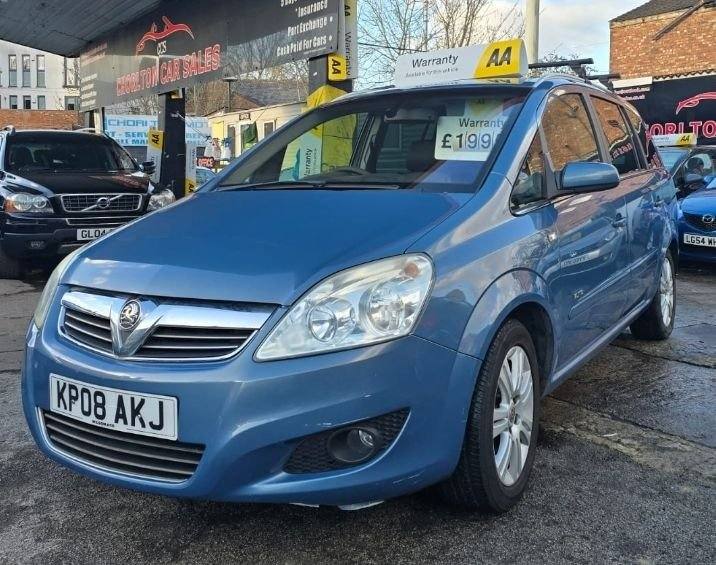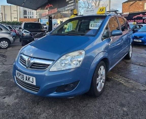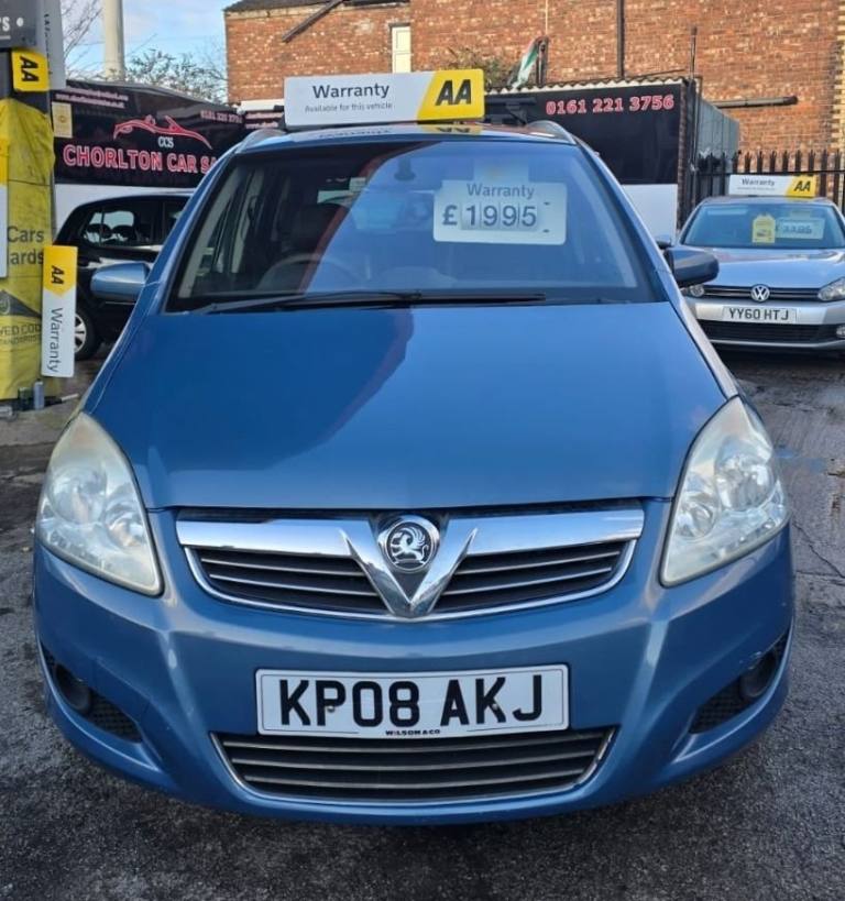 Here we have for sale a lovely 2008 vauxhall zafira elite in a lovely mettalic blue complimented by a full black leather interior. It is the strong 1.8L petrol engine which is great for new or first drivers as they are cheap to insure and very economical to run. It has covered very low mileage for its age of just over 82000 miles backed by some service history. It is only 2OWNERS from brand new and this is reflected in the condition of the car. It will come with a full 12month mot with no advisories and a full service from ourselves upon purchase. Very clean car both cosmetically and mechanically. First to see will buy. Here at chorlton car sales we strive to deliver 100% customer satisfaction to all our customers therefore we offer a full 3month aa warranty for complete piece of mind. Extended warranty is available by the reputable aa warranties for up to 12months as we are approved dealers for them. They are the uks number one warranty company. We are now proudly part of the aa dealer promise as aa approved dealers which means you can buy through us with complete confidence. Delivery available. 5day driveaway insurance available.12month aa breakdown cover with all vehicles. All major cards accepted. All forms of payment accepted. Open 7days a week. AA APPROVED DEALERS, CONTACTLESS DELIVERY AVAILABLE, 12MONTH BREAKDOWN COVER WITH ALL VEHICLES, 3MONTH AA WARRANTY WITH ALL VEHICLES, ALL FORMS OF PAYMENT ACCEPTED, ALL MAJOR CARDS ACCEPTED, OPEN 7DAYS A WEEK. .Remote ultrasonic alarm System, Vertical load restraining net, Full size spare Wheel, Electric folding door mirrors, 12V Power Outlet- Luggage area, CD30 stereo Radio & CD & MP3 player & Aux-in socket, CD30 stereo Radio & CD & MP3 player when with Rear Seat Twin Audio, Driver sunGlasses holder, Halogen Headlights, Silver RoofRails, Tyre Repair kit