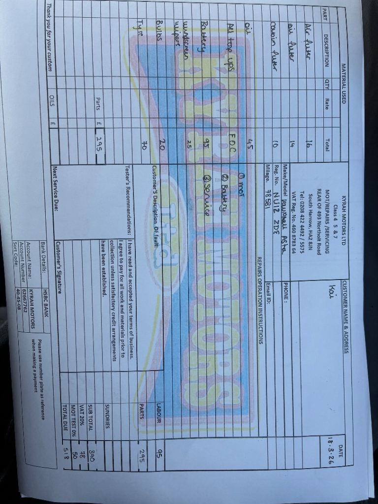Service & MOT total: £518 ( 19/03/2026)